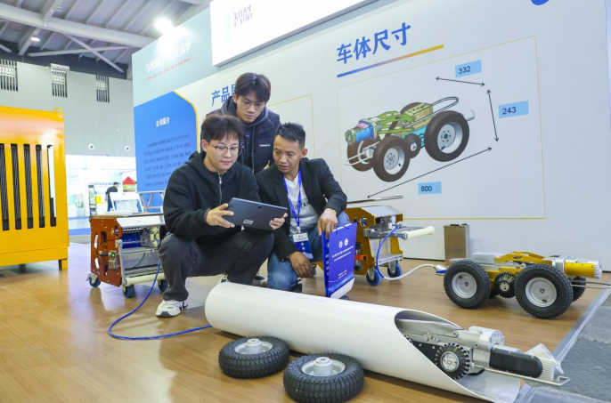 在博览会现场,一款主动管道勘探机器人招引了很多市民驻足观看,“通过勘探机器人,咱们咱们可以快速排查市政管道里边存在的问题,及时供给解决方案。”江西省智酷机器人有限公司开发部司理周稳说,“此次展会,咱们咱们带来了三款自主研制的机器人产品,分别为第一代管道勘探机器人、清淤机器人和190管道勘探器。